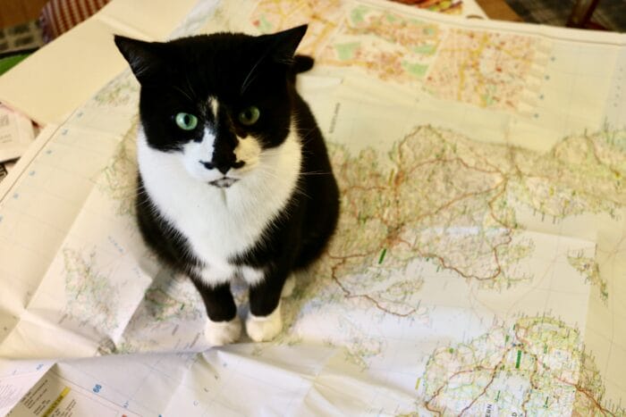 If you ARE planning to drive, be sure to read the Rules of the Road for the UK so you know what all the squiggly lines on the road mean. Each tour will finish in London, close to the airport for your flights home. No one should think about leaving London without riding a big red double-decker bus for a bird’s eye view of Big Ben (which was hit but not destroyed by a bomb in WWII, and only lost one second in the process🇬🇧) , and no one should go without experiencing the handmade-glory of Westminster Abbey. If an eight-day tour isn’t long enough, you could take two tours, or you can stay in London for a few days . . .So many possibilities ~ maybe a few of you would want to join together for a tour to Scotland, just ask the travel person. If enough of you want to go, I would imagine they would make it happen. I will put the tour contact information on Facebook and Instagram very soon, also on Twitter, and here on the blog … as soon as I get a few more details ~ because I just realized I want them to take you to a Waitrose Supermarket. I love seeing wonderful food stores when I travel. Great place to get “English things” to take home. But don’t worry, all the answers will be here for you as time goes by. I should tell you, I don’t personally have any connection to this travel agency, but it has been “Girlfriend Approved” and talking to them was a pure pleasure (you’ll see), they are on our same wavelength, travel-wise. Joe and I won’t be on any of the tours, we’ll be off on our own adventure . . . perhaps we will run into you along the way! We’ve met Girlfriends out on walks in the middle of nowhere on other trips, so I wouldn’t be a bit surprised! (Pic above: Across a wide field I saw this woman waving at us while we were out on a walk. She looked so welcoming! But, who was she? Did I go to high school with her? We didn’t recognize her! … We started talking and discovered she was one of us! I forget I have a familiar face to some people; tall Joe, in his beret, is like a very handsome neon sign, but it’s still always a surprise! Isn’t that fun?)