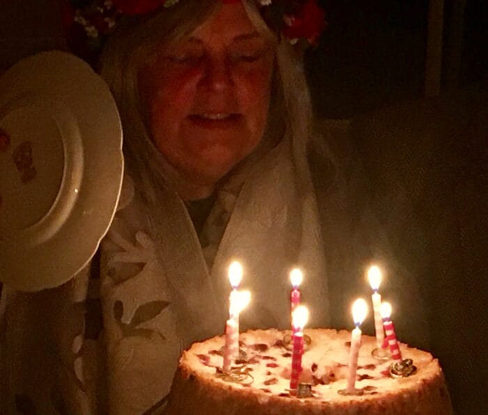 You can see we did the “ring thing,” put our rings on the cake as we always do, so there were wishes galore … she used a plate to “blow” out the candles (I had a fan, set it down somewhere, never to be seen again that night!) . . . we’ve decided in honor of the Pandemic we will no longer spit on each other’s birthday cakes!What else . . . ???
