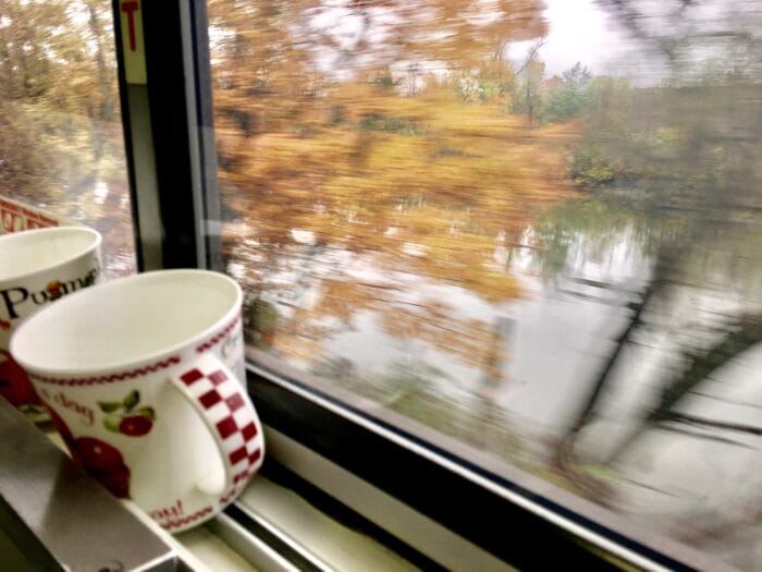 Or, riding a train to California in our room with a view . . . stopping for dinner in Chicago . . . having adventures! But then we remember how lucky we are to be safe at home, and how much harder it is for so many who’ve lost much more than we have. All we’ve lost is our freedom. It could be so much worse.