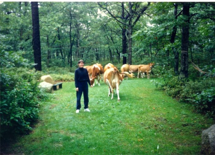 It is so quiet on the island . . . Notice how our walk hasn’t been “prettified?” It is as it always was. Woods and dirt roads, potholes and all. Just the way we like it. New spring leaves, wild blueberries, beach roses, and the sea.![]()