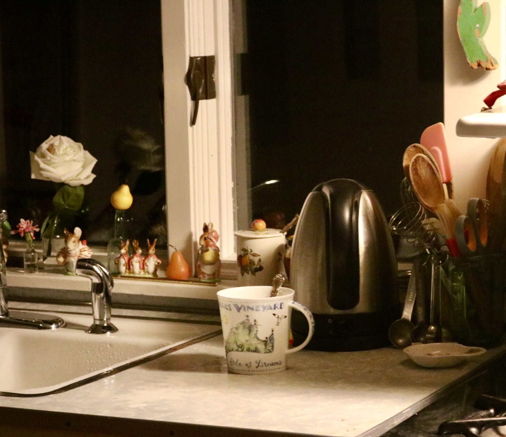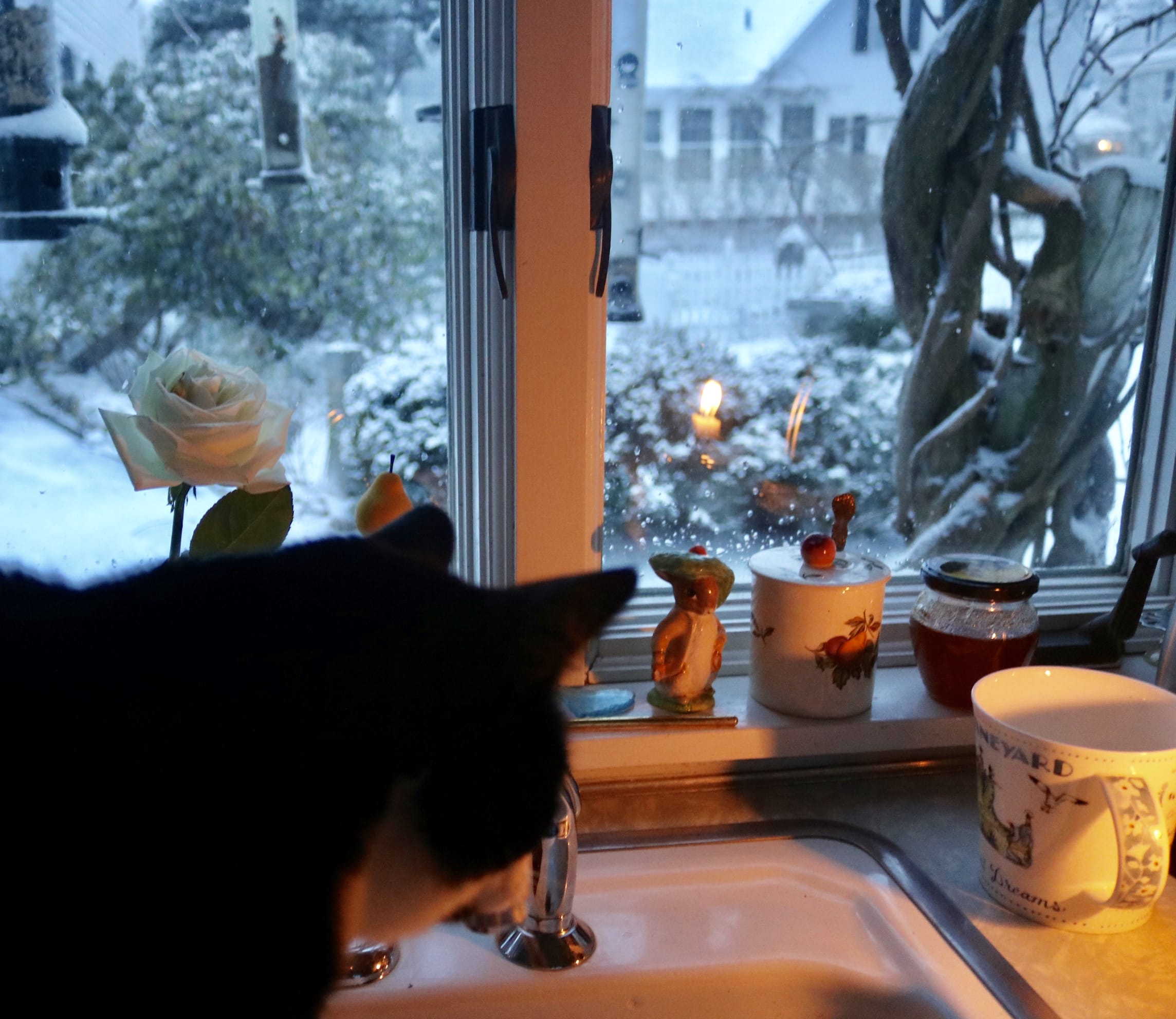 But back to this morning . . . The electricity blinked off, I lit a candle and kept it lit, even when the light came back on, just in cases! I don’t like to be, how you say,