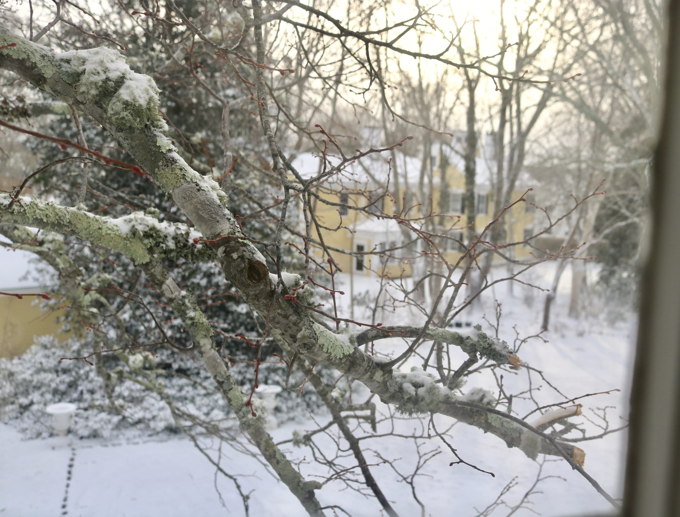 While I was upstairs, I looked out the other side of the house to see what I could see of this branch that had made such a noise last night . . . and got an eyeful. Yikes!