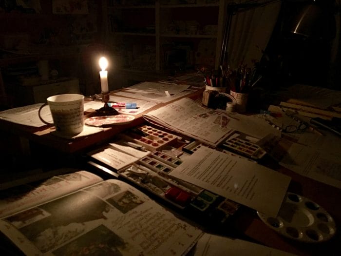 But back to this morning . . . The electricity blinked off, I lit a candle and kept it lit, even when the light came back on, just in cases! I don’t like to be, how you say,