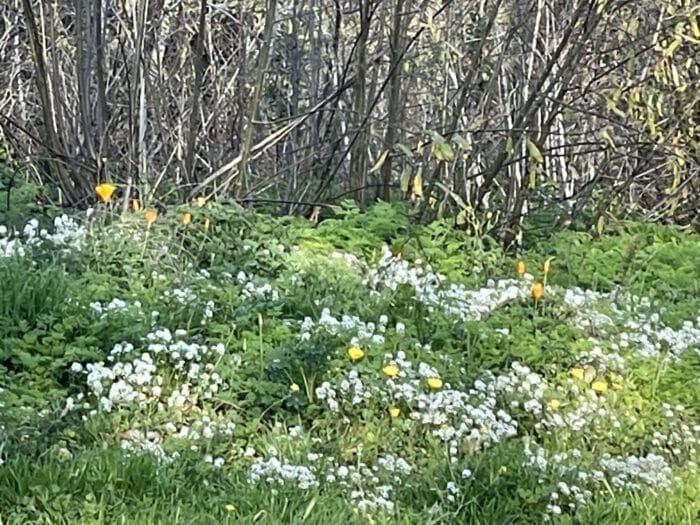Here’s the little chunk of dirt out back that Alfredo threw a packet of wildflower seeds into last year, and now, when I walk out there, there it is, just coming up, in its 2nd year! Just saw the first lupine in there yesterday! Thank you Alfredo. And Thank you God. I say it every day. This whole thing feels like a small rebellion to the tyranny of time. Because it all comes to a stop in the garden.🌷