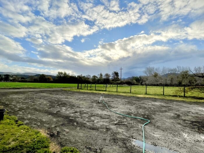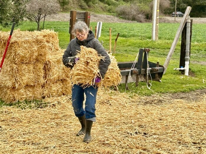 Looks like rain is coming, so we’re about to reseed. I feel like Ma Kettle. We have the hay ready this time. To be spread lightly over the seeds to flummox the
