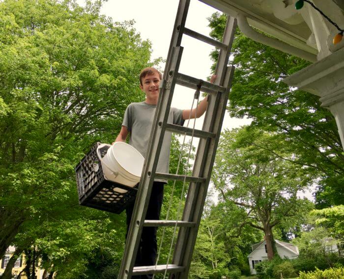 And handy too, the perfect guests! This is Paden helping Joe do I-don’t-know-what on the roof.