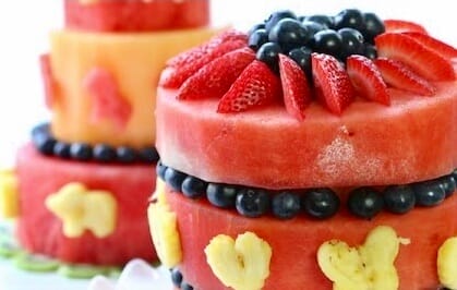 So fun, the sky’s the limit with your imagination! You can even do smaller cakes with cantaloupe! I saw one cake decorated with starfruit! Very cute! 🍓