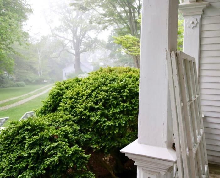 My hour for tea is actually anytime I want! But half-past-five in the morning is perfect! We had some moody Island fog today ~ the fog horn was blowing all morning long. I like it. Makes us invisible. We’re out here hidden in the mist.