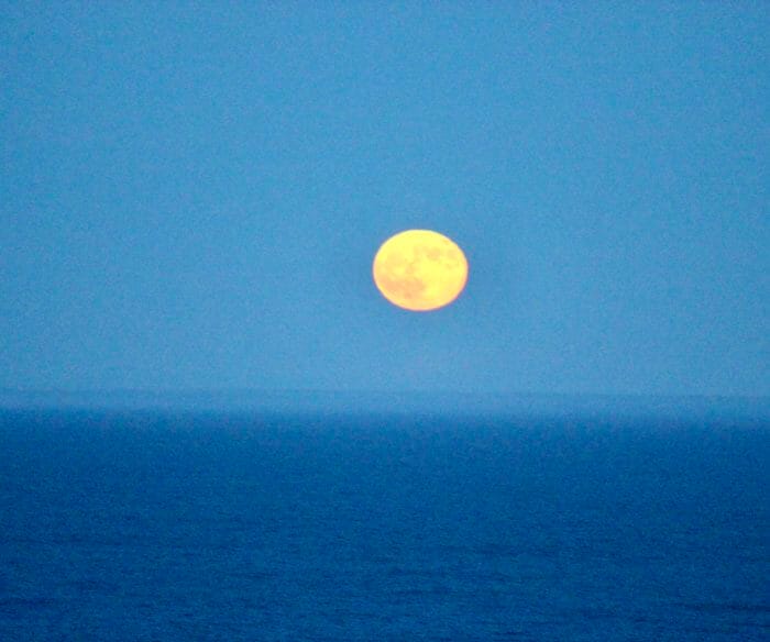 The moon followed us on the Queen Mary 2 all the way home. We left England on a Sunday, the moon was full on Wednesday, and we arrived home, along with the moon, the following Sunday . . . pondering the gift of each day . . .