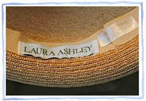 This is exactly where I can share with you what I found today, strolling through the Old Ice House Antique store here in our little historic town. Your darling little hat pictured above, has been on my mind ever since I found “home” here on your blog….I have googled and searched and surfed all over the world here on the computer, to no avail. But today…my seriously lucky day…I walked along side a booth …and there she was…that sweet little Laura Ashley hat that had evaded me for so long! I threw my hands up and had to testify in the middle of the antique mall…to a couple of ladies working diligently in their booths across from me:)) They know, all too well, what it is to find a treasure…for it IS all about the search:) But I am such a hat person, Sue, and this one fits me perfectly! (Now, of course, I had to wear it with the label to the front, instead of the back, for that is more flattering to my profile, you see;) ANyhoo…I just wanted you to share that little thrill with me, for I too, was a Laura Ashley girl of the 80’s. The prettiest dress I have ever owned…hands down…was the sweetest softest lawn cotton floral, of the softest feminine pastel colors, with a big white ruffled collar and bow. I wore those white canvas Ked tennis shoes with cotton ankle socks…and felt like a million dollars. I wore it when I was pregnant, when I wasn’t pregnant…I wore it when we attended a big tennis tournament to watch a tennis player who was very famous at the time, but for the life of me I cant remember his name….I was just feeling so lovely in my new dress! I had quite a few more after that…but that was my “first love”…and I would give my right arm to remember which pregnant friend I loaned it too. Thank you for “listening” to my memory of that incredible woman who rocked my world as a young mommy…and for sharing my delight at finding my new favorite hat:))