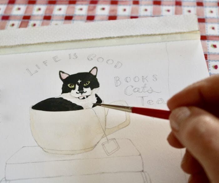 Thx Susan I luv all your books and drawings I do have one mug with one if my dogs on it but your Jack is the cutest cat around you’ll find a way maybe he can be outside in your garden if flowers in spring with some birds or lying in a window seat or by the fireplace you’ll think of something Luv your trips to England Hi Joe keep warm everyone