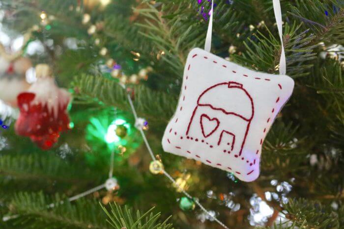 And this one, marked “1982,” my first year on Martha’s Vineyard. I have dated ornaments all over this tree. If I can’t find one for the year, I make something, or get a little knitted sweater or stocking ornament and embroider the date on it!
