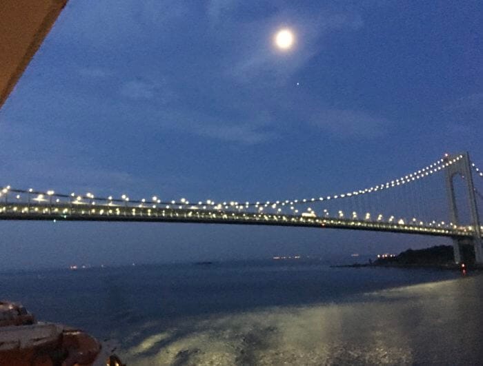 Walking out back to Martha’s under the full moon. Looked like this . . .