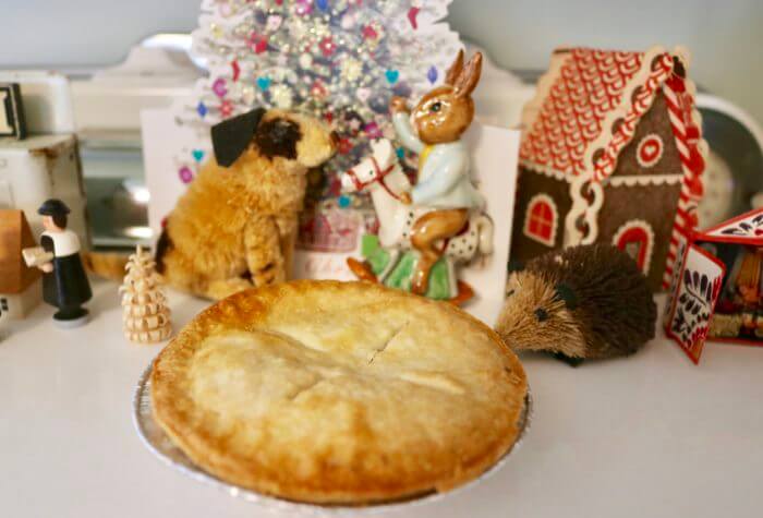 I love your blog and especially reading about your Christmas holiday. I have to ask you. In one of your photographs (a pie is in the foreground) there is a ceramic Peter Rabbit on a rocking horse in the background. What is the name of that figure and where can I get one? I have been searching the internet to no avail. Hope you can help.