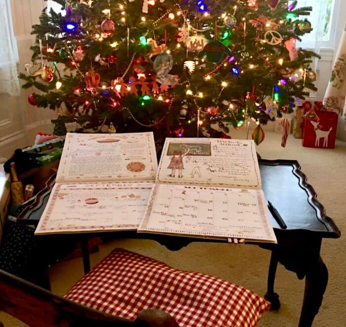 watercolors, painting borders and lambs, scratching my pen across paper, and choosing the best photos to tell my story. New Calendars for 2020 are due soon. I’m laying the first one out on the back of my sofa (above) . . . January, February, March . . .